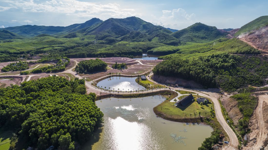 Công trình được bao quanh bốn bề là hồ nước và các ngọn núi, công viên quy tụ nhiều loại thảm thực vật khác nhau, tạo cảm giác nhẹ nhàng và tươi sáng.