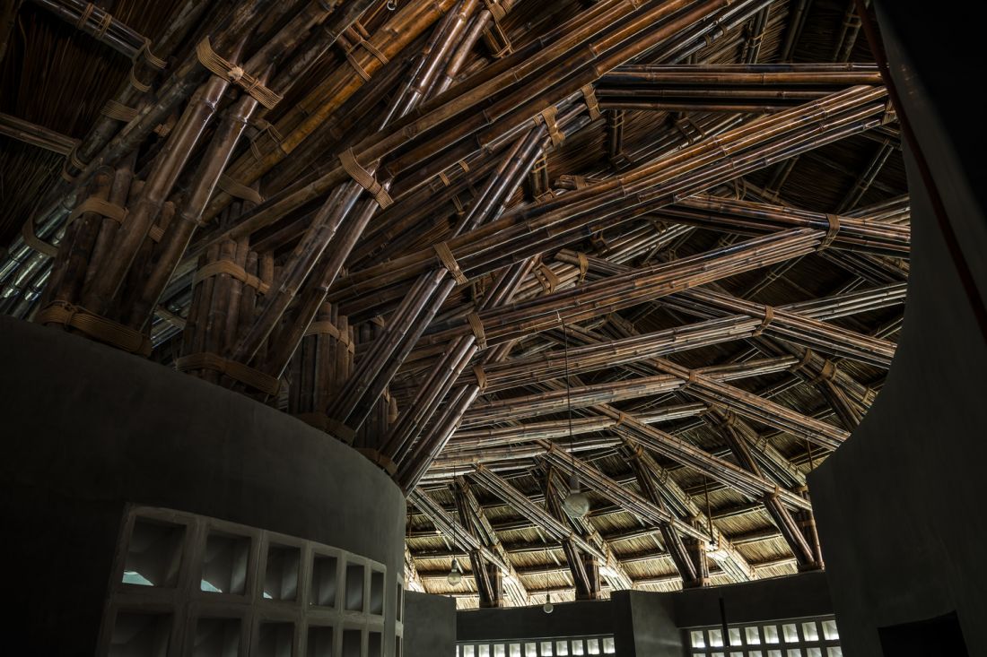 Vật liệu sử dụng cho công trình có sẵn tại địa phương với chi phí phải chăng như tre, nứa, tranh và gạch. Điển hình như gạch đục lỗ giúp không khí và ánh sáng truyền vào bên trong các không gian mà không cần điều hòa hoặc đèn chiếu sáng.