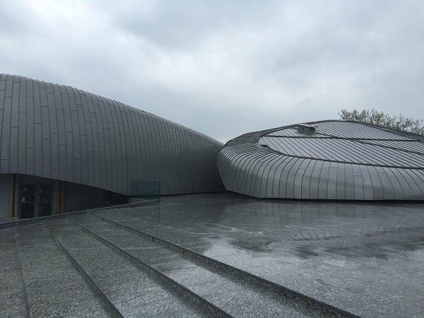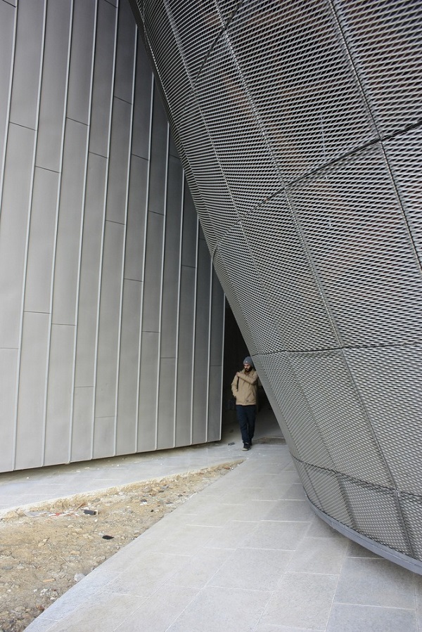 Tòa nhà này mang hình dạng bốn khối lớn với quy mô khổng lồ, cong lượn, lấy cảm hứng từ những viên đá lớn.