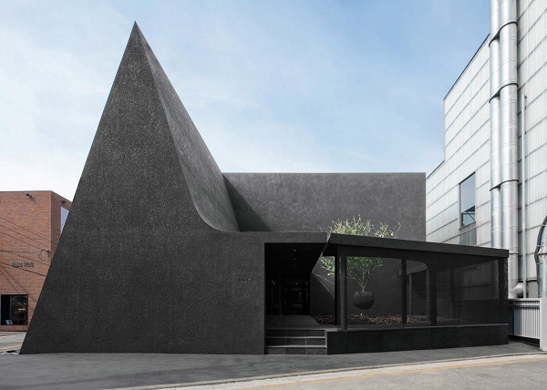 Theo đó, cửa hàng thương hiệu thời trang Juun.J gây ấn tượng với các cấu trúc họa tiết hình tròn, hình tam giác và hình vuông dính liền nhau trong tông màu đen sì lạ mắt.