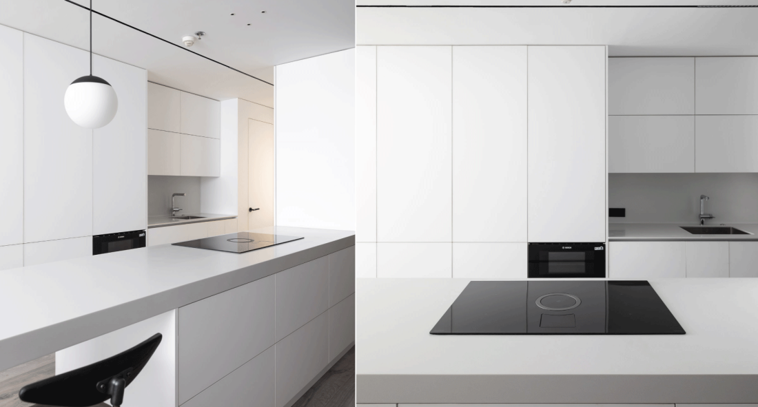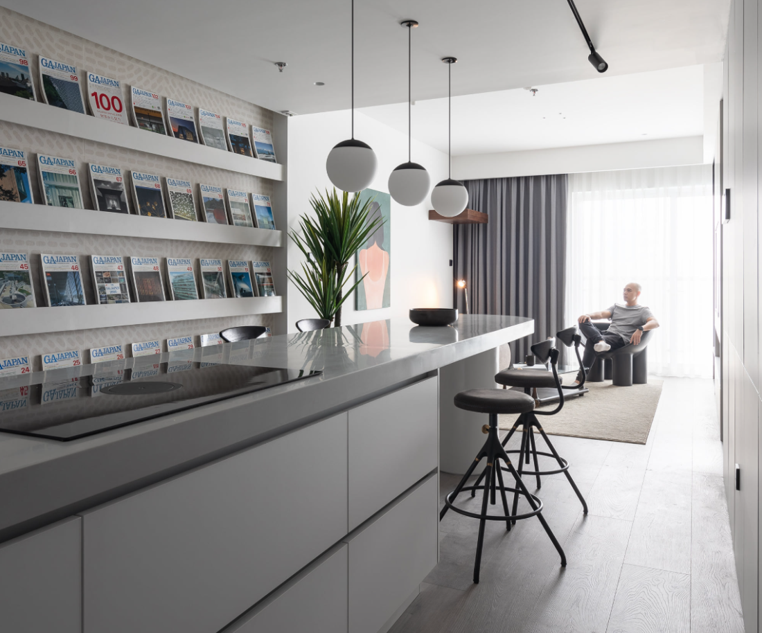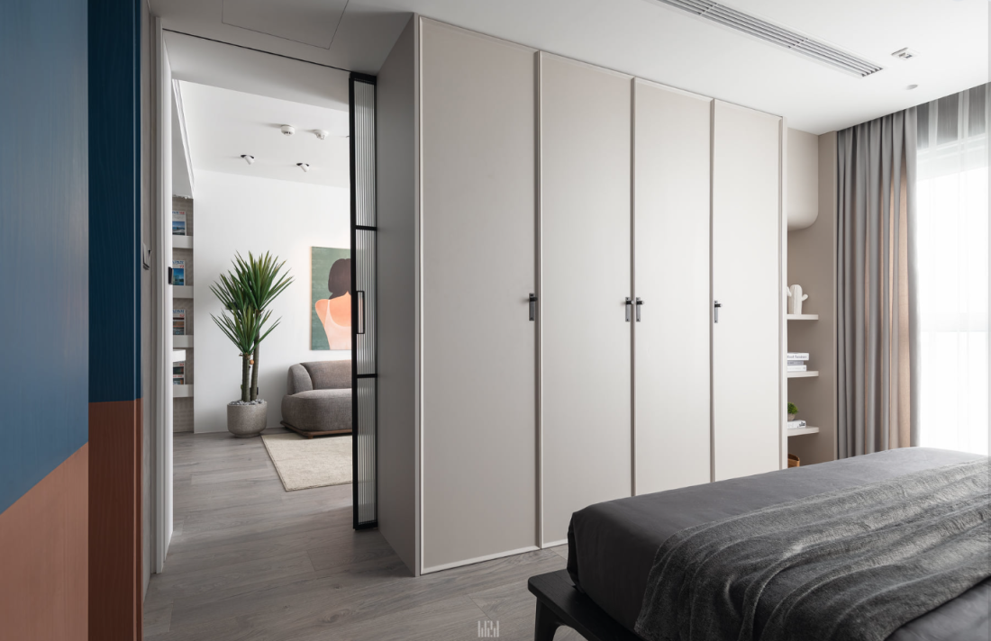 Với một người yêu sự gọn gàng nhưng bận rộn, giải pháp lưu trữ được trải khắp căn hộ. Hệ tủ không tay nắm được thiết kế như những bức tường phẳng, xóa nhòa cảm giác nặng nề của nội thất. Đây chính là cách căn hộ tự dọn dẹp chính mình, giúp không gian luôn trong trạng thái ngăn nắp.