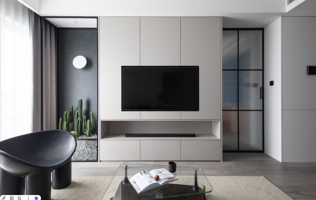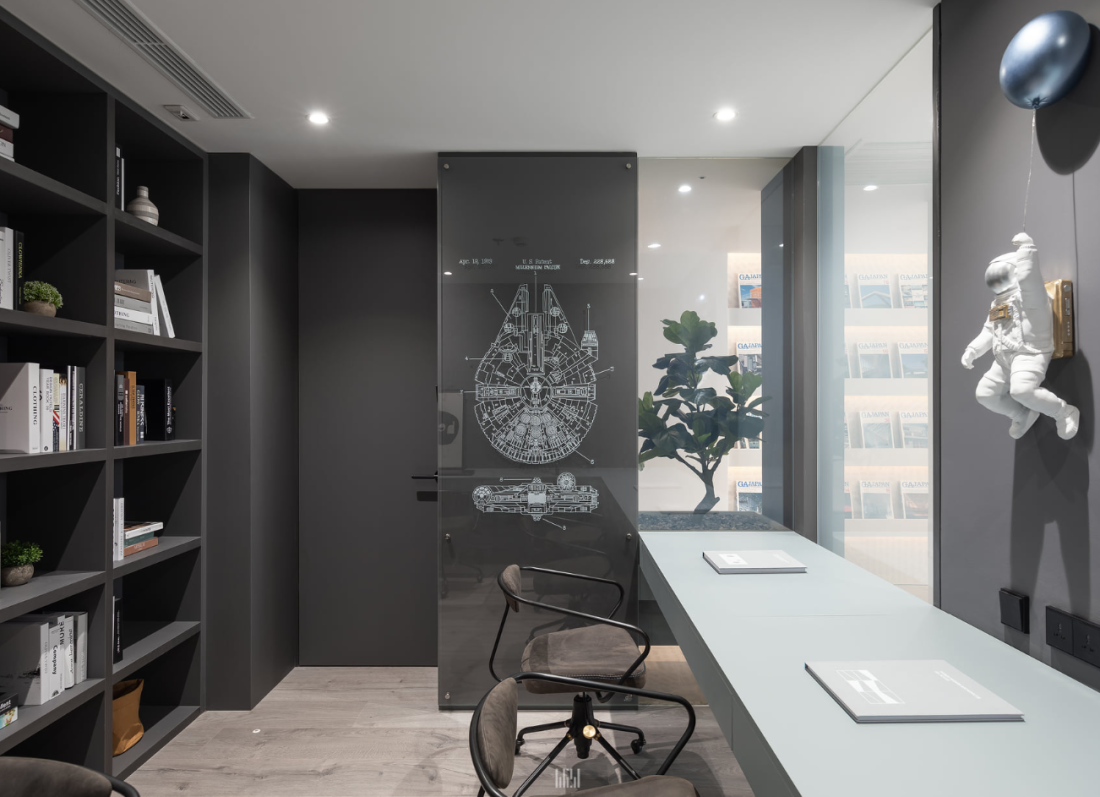 Để giải quyết mâu thuẫn giữa tính riêng tư và sự thông thoáng, kiến trúc sư đã sử dụng vách kính điện tử thông minh. Chỉ bằng một nút bấm, hệ kính có thể chuyển đổi linh hoạt từ trong suốt sang mờ đục, cho phép gia chủ thay đổi trạng thái không gian tùy theo nhu cầu làm việc cá nhân hay đón tiếp cộng sự.