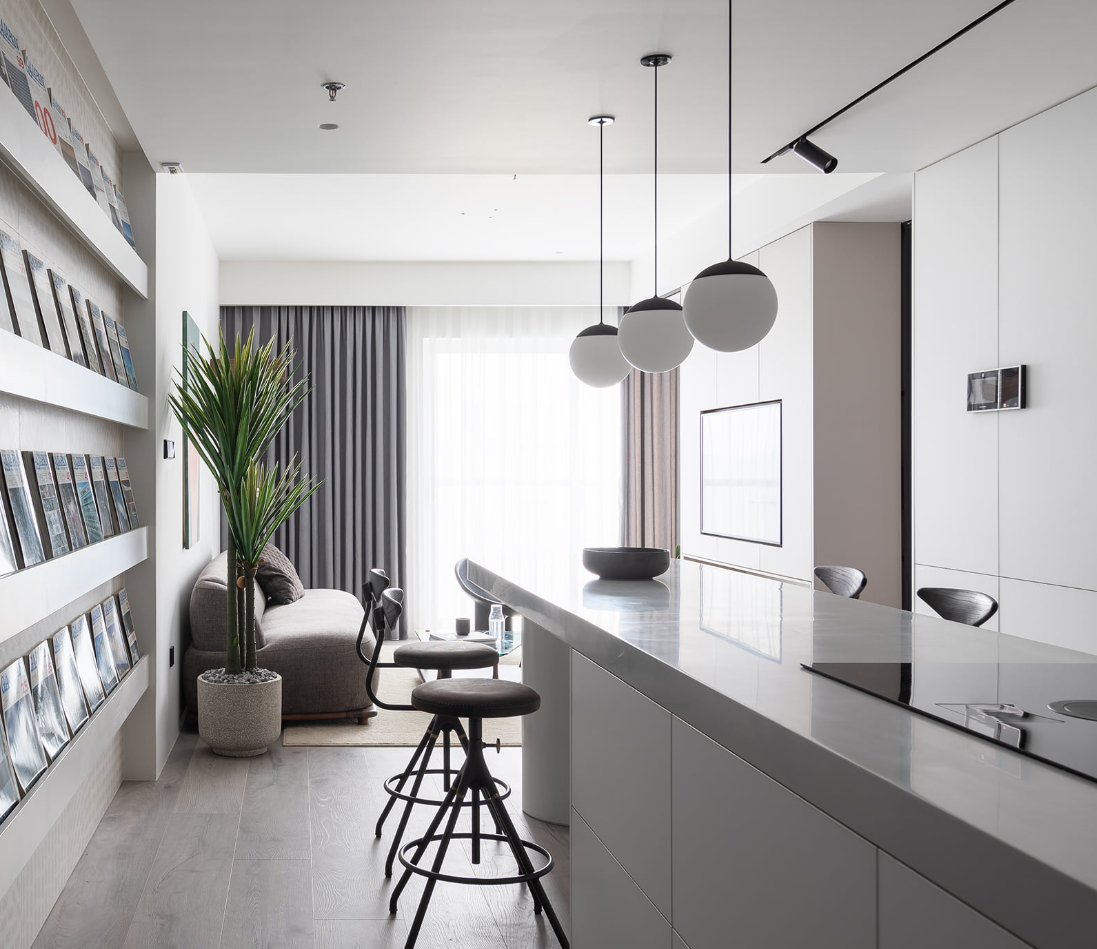 Sự xuất hiện của kệ tạp chí kéo dài tạo ra một lối dẫn hướng đầy tính nghệ thuật.