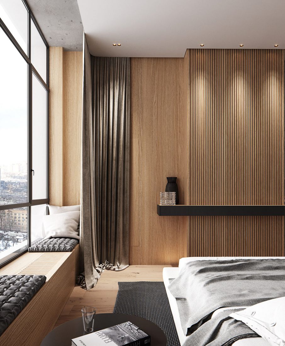 Thiết kế thêm bục gỗ bên cửa sổ tạo nên một không gian đầy thú vị.
