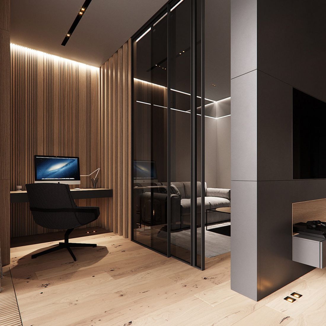 Cửa kính được ngăn cách để tạo nên một khu vực yên tĩnh cho không gian làm việc.