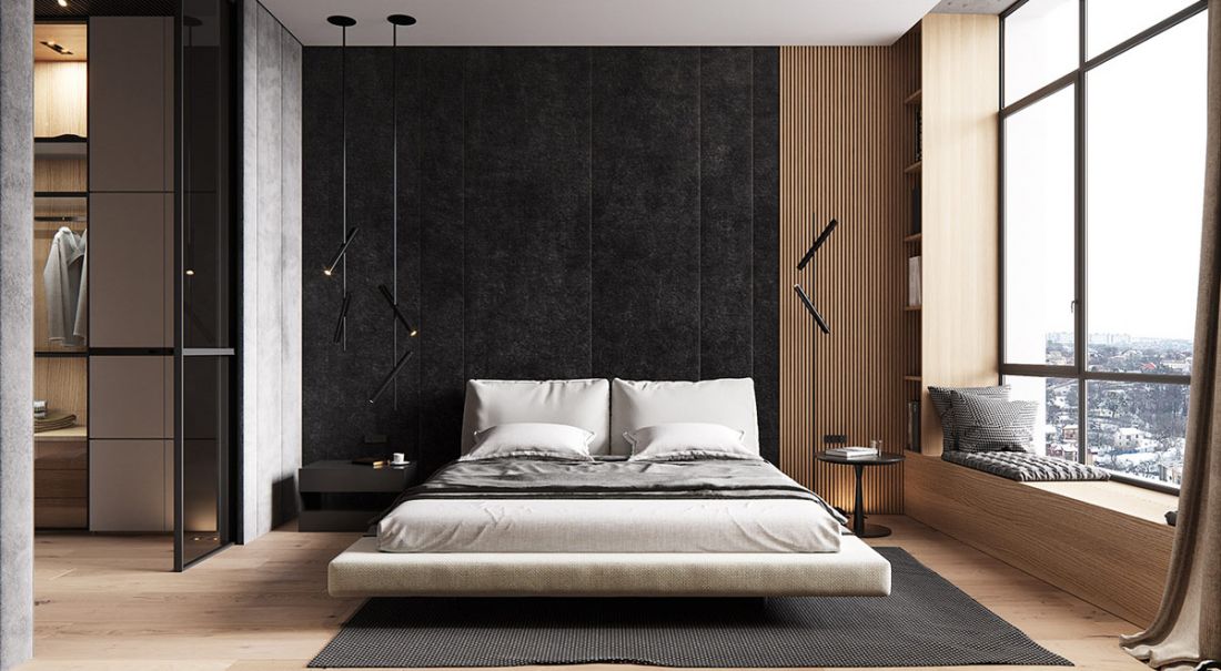 Phòng ngủ thoáng rộng cùng cửa sổ lớn giúp mang ánh sáng tràn ngập vào căn phòng.