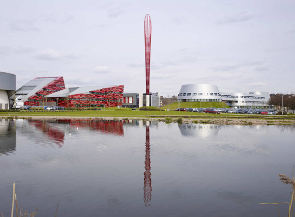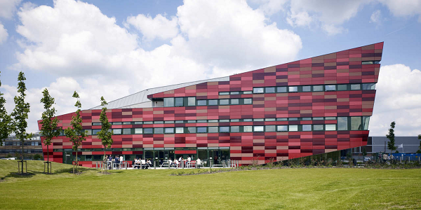 Một lớp vỏ mạ kẽm cũng được khéo léo sử dụng làm nổi bật các đường cong góc cạnh cấu trúc và thiết lập tòa nhà như một tiêu điểm mới đặc biệt cho khuôn viên.