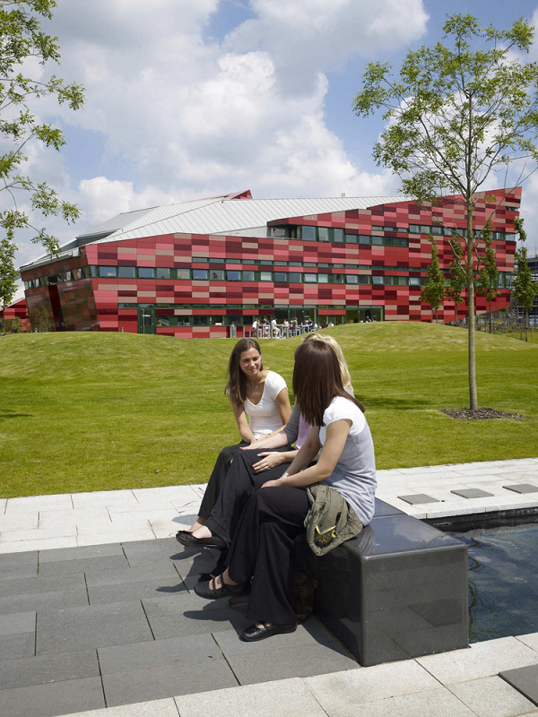 Khuôn viên trường cũng có liên kết vật lý giữa khu vực học thuật và kinh doanh.