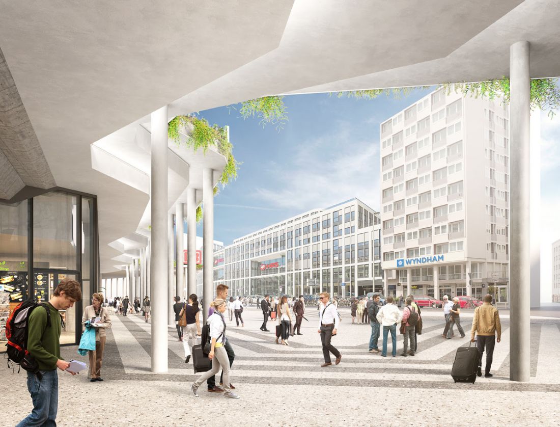Về cấu trúc sẽ mở rộng và có nhiều không gian thư giãn, cây xanh trên mái nhà. Lối vào tàu điện ngầm nhà ga có một không gian hình tam giác, vì vậy thiết kế mới sẽ nhất quán cùng một ngôn ngữ thiết kế để cho cái nhìn đồng nhất về mặt thị giác. Ngoài ra, các tán cây sẽ tạo bóng râm cho các khu vực nhà hàng và quán bar. Bên cạnh đó, việc thu gom nước mưa trên mái cũng sẽ góp phần cải thiện khí hậu đô thị địa phương.