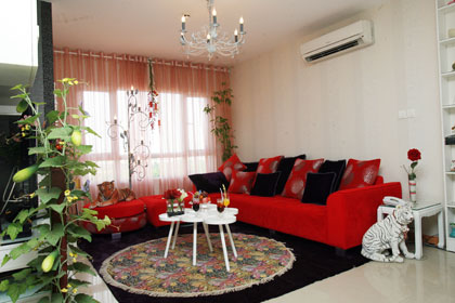 Phòng khách, khu chính trong căn hộ được Phượng quan niệm là khu tình yêu, nóng bỏng, nồng nàn với đồ nội thất màu đỏ, đậm yếu tố hỏa. Khu trưng bày những vật kỷ niệm của cô trong quá trình đi đóng phim lại mang yếu tố thổ với cây, đất, cát, ý nghĩa tôn vinh sức trẻ, sự bay bổng, sáng tạo. Khu tâm linh thờ phụng trong nhà nặng yếu tố kim với tông màu xám - đen, trắng.