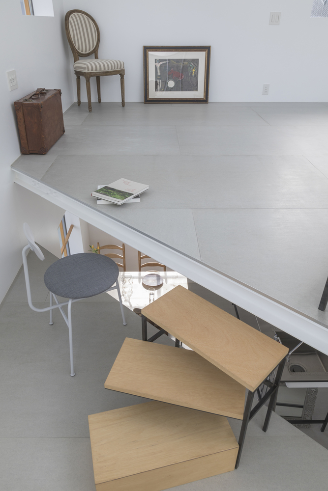 Không gian các tầng được phân biệt nhờ sự thay đổi của cao độ sàn nhà. Các tầng còn được sử dụng như bàn và kệ.