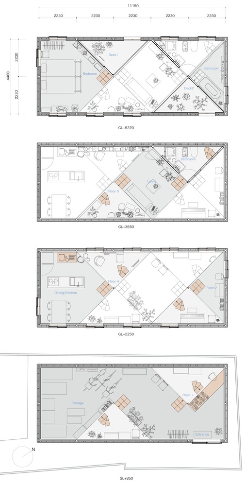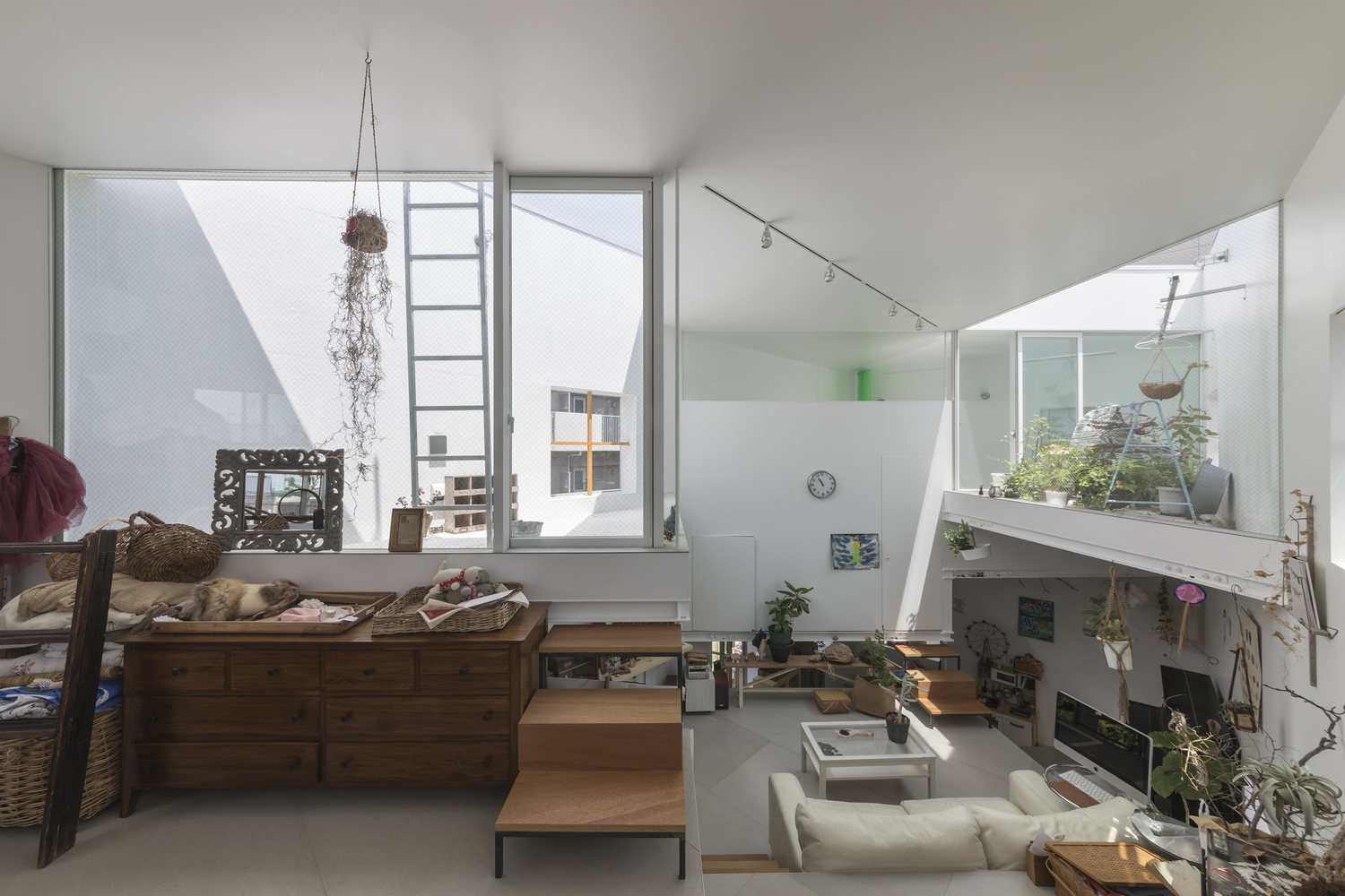 Để đáp ứng được yêu cầu của gia chủ và xây dựng đủ không gian để chứa đựng đồ đạc của họ, các kiến trúc sư của Tato Architects đã đề xuất xây dựng các tầng liên kết với khoảng cách chênh lệch là 70cm.