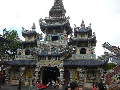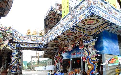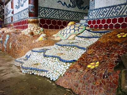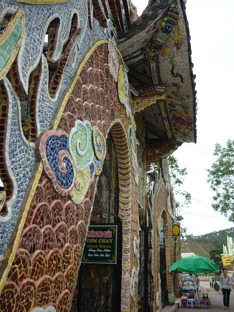 Chùa Linh Phước ngoài lối kiến trúc độc đáo, toàn bộ ngôi chùa còn được khảm bằng mảnh sành.