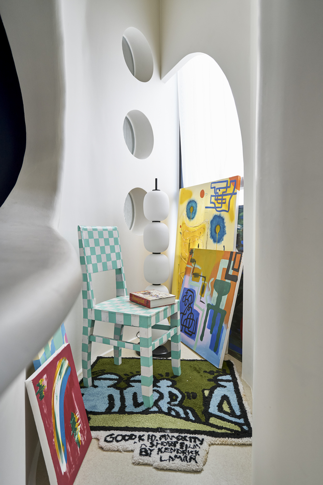 Ngoài ra ánh sáng tự nhiên cũng được chuyển từ bên ngoài vào trong nên mọi góc của hang thông thoáng. Khi màn đêm buông xuống, những hang nhỏ sẽ thay đổi không khí sang sắc màu lấy cảm hứng từ những bộ phim thập niên 60, 70 hòa cùng những giai điệu yêu thích hằng đêm của gia chủ.