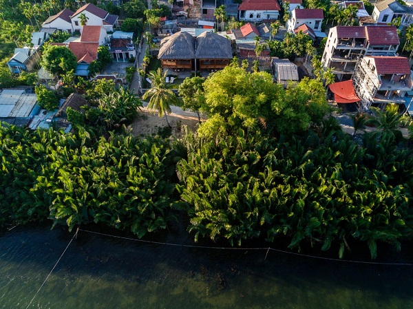 Hiện trạng xung quanh biệt thự ban đầu vẫn còn hoang sơ và chưa có phát triển đồng đều, bao quanh có nhiều cây dừa nước, một loại cây đặc trưng của khu vực này.