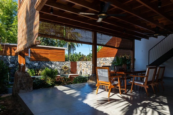 Khu vực sinh hoạt chung được bố trí bên ngoài, trong khi không gian bên trong được dành để nghỉ ngơi. Đồng thời cả hai không gian đều được kết nối liền mạch với thiên nhiên xung quanh.