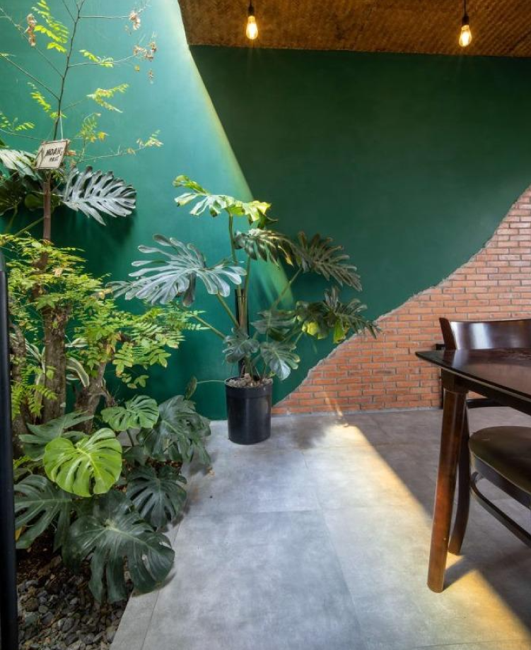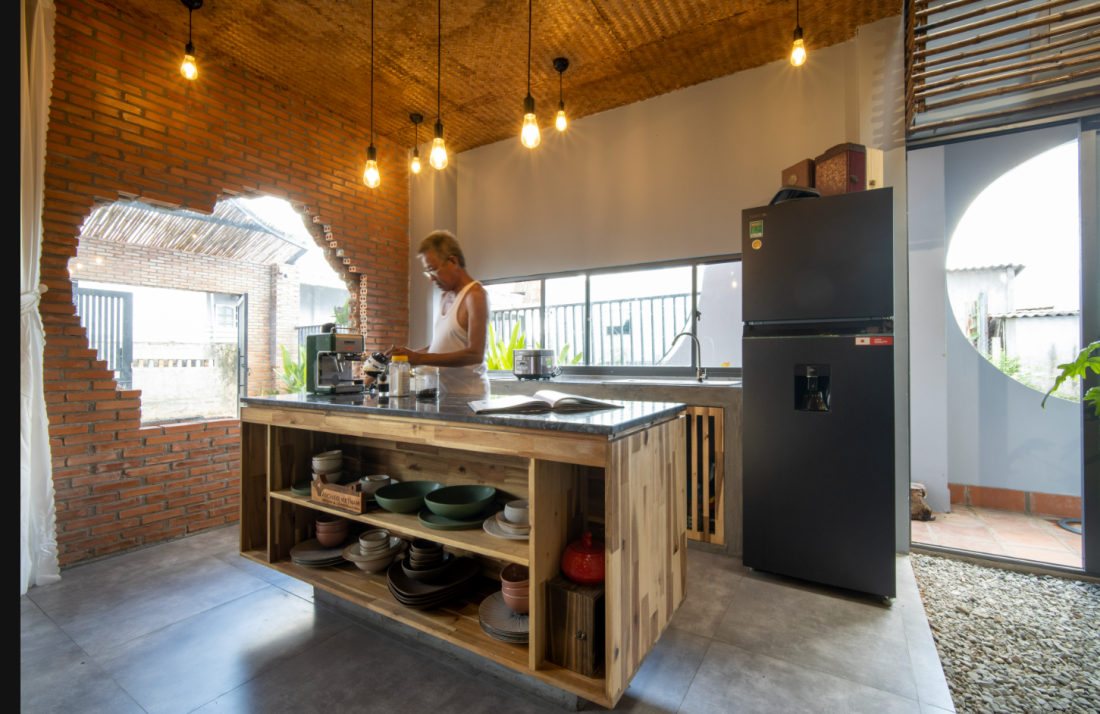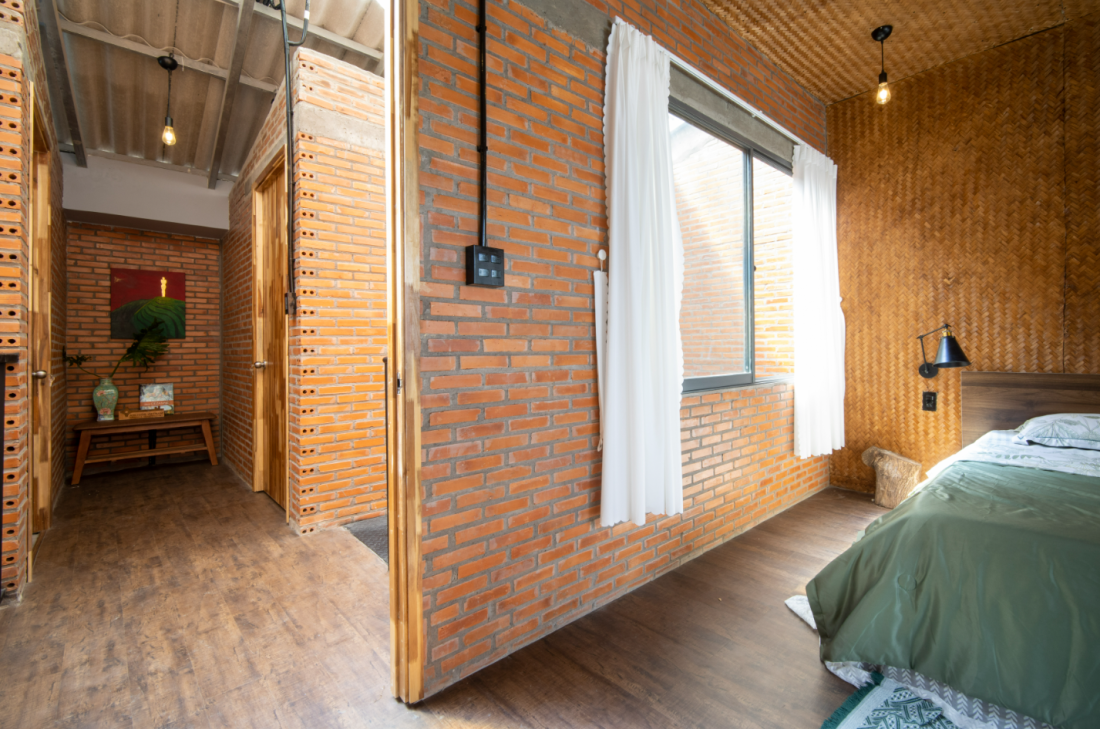 Sự kết hợp giữa kỹ thuật hiện đại và thủ công truyền thống qua các thợ thủ công địa phương để tạo nên không gian nội thất mang phong cách tường gạch lộ thiên vừa tiết kiệm chi phí vừa đẹp mắt.