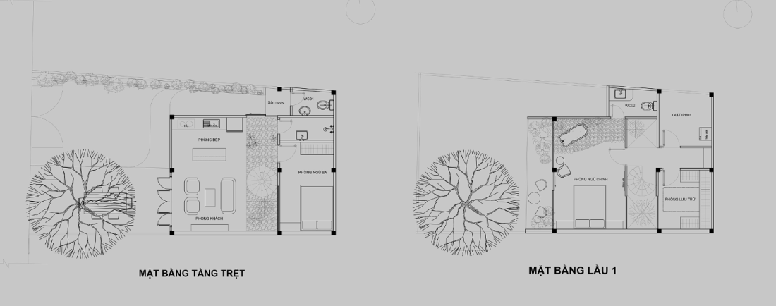 Mặt bằng kiến trúc cho nhà phố hiện đại tại Tiền Giang.