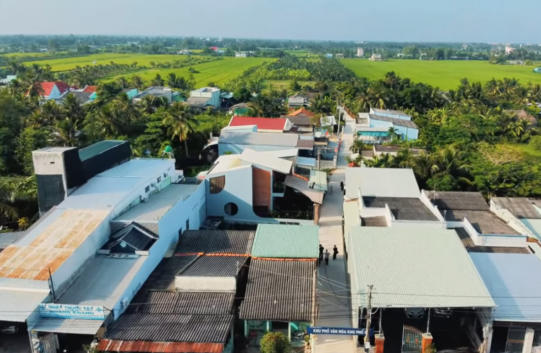 Kiến trúc thân thiện với môi trường: Ngôi nhà được thiết kế để tận dụng tối đa ánh sáng và gió tự nhiên. Khu vực trung tâm mở rộng giúp không khí lưu thông tốt, kết hợp với cây xanh được trồng khắp nơi trong nhà tạo nên một không gian mát mẻ và thoáng đãng. Cách tiếp cận này khá mới mẻ đối với các khu vực nông thôn ở miền Nam Việt Nam, mang lại cảm giác yên bình và thoải mái cho ngôi nhà.