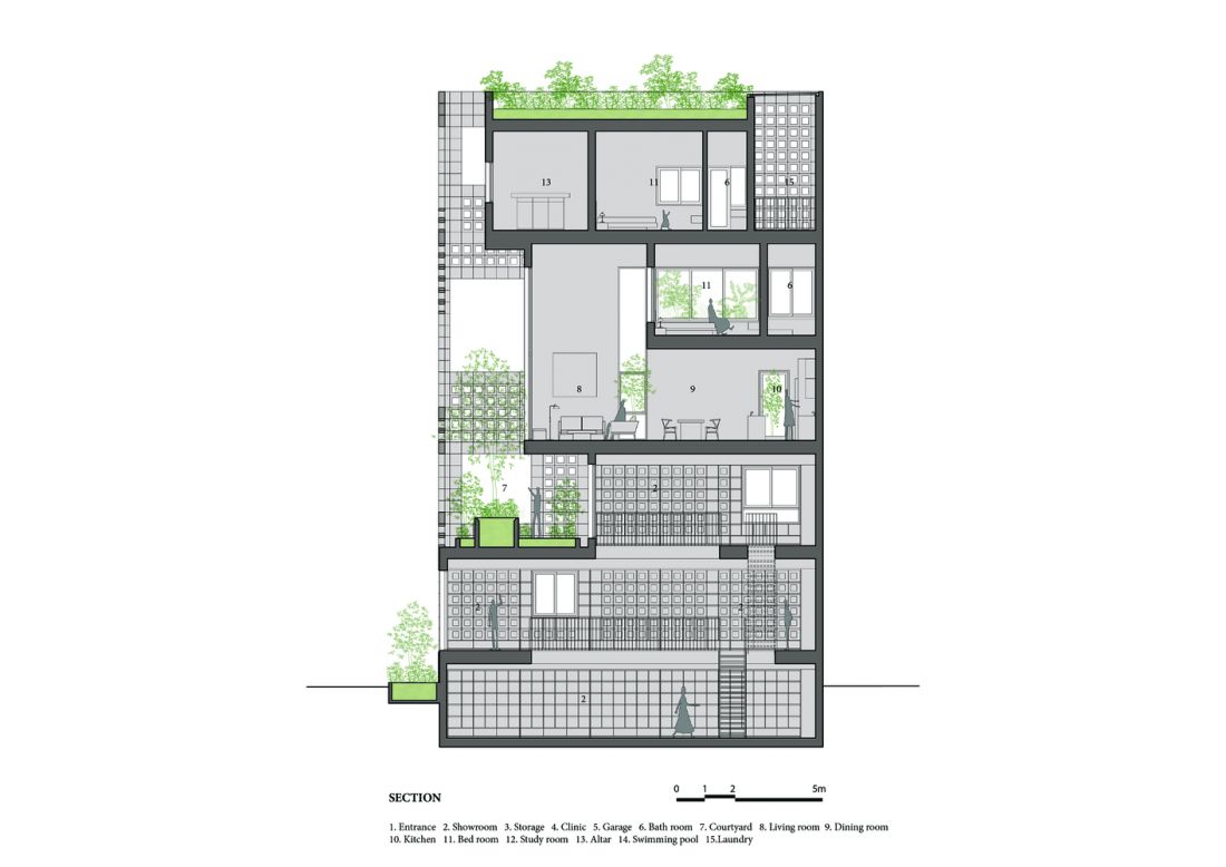 Ngôi nhà được thiết kế dựa trên những ước mơ và niềm hy vọng của chủ nhà về một ngôi nhà, nơi mà tận dụng mọi khoảng không gian xen kẽ giữa các khối chức năng, để thiên nhiên được hòa nhập và hiện diện trong sinh hoạt hàng ngày.