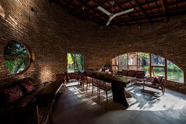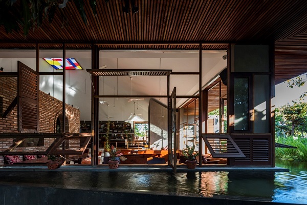 Hơn nữa việc giữ lại toàn bộ hiện trạng và kênh rạch tự nhiên giúp cho công trình được hòa vào cảnh quan xanh nguyên bản và duy trì không khí mát mẻ tận lõi công trình.