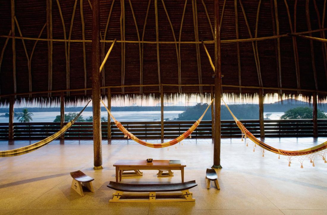 Cuối cùng là khu nghỉ dưỡng tại Brazil – công trình dựa trên cách tiếp cận bền vững với giải pháp sử dụng lợi thế của khí hậu, kỹ thuật xây dựng địa phương. Các cộng đồng ven sông đã đóng thuyền gỗ từ nhiều năm truyền từ đời cha sang con. Vì vậy khu nghỉ dưỡng đã thiết kế như một chiếc thuyền úp ngược, kiểu nhà sàn thông gió từ bên dưới và giảm nhiệt bên trên, đến trong nhà.