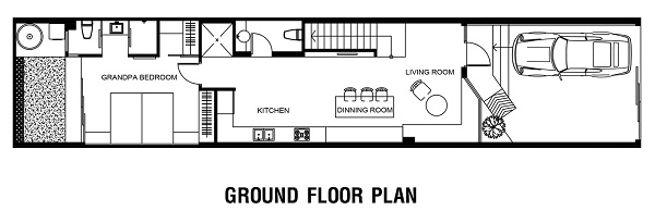Ngôi nhà gồm 3 thế hệ, ông bà sống cùng con cái, con cháu trong khu dân cư yên tĩnh và mát mẻ, vì vậy công trình cần thiết kế thông thoáng, tận dụng ánh sáng tự nhiên vào trong nhà.