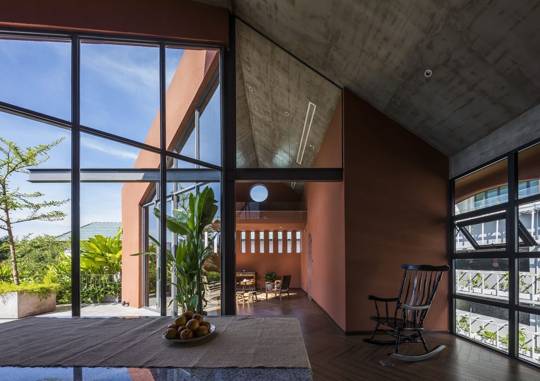 Một khoảng thông tầng lớn kết nối giữa các hoạt động trong nhà với thiên nhiên bên ngoài, đây là ý tưởng được ứng dụng độc đáo, có chủ đích nhằm mang đến cảm giác yên bình và thân thuộc với những mô hình kiến trúc nhà ở truyền thống Á Đông. Sự tĩnh lặng trong không gian này sẽ đưa con người cảm nhận sâu sắc về chính mình và hướng về nội tâm nhiều hơn.