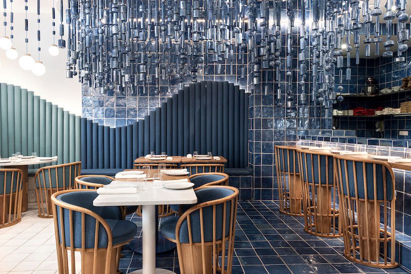 Nhà hàng được thiết kế tạo khung cảnh đại dương, khiến du khách cảm thấy như thể đang chìm dưới nước biển. Gạch màu xanh lam và sóng gốm, gây sự chú ý đặc biệt đến nhà bếp; phần quan trọng nhất của nhà hàng. Thiết kế độc đáo này làm cho không gian nhà bếp mang đậm phong cách đại dương. Phía sau nhà bếp, không gian lưu trữ được thiết kế như trong một chợ cá.