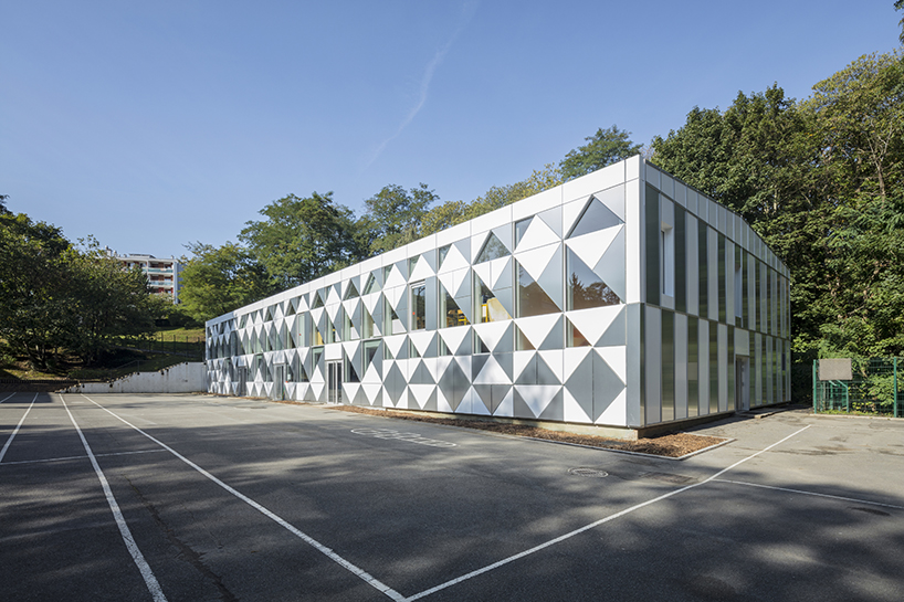 Trường tiểu học này có tên là La fontaine, nằm trong một khu thiên nhiên miền ngoại ô nước Pháp. Diện mạo mới của trường này được cải tạo từ một trường học cũ có nền tảng tương tự.