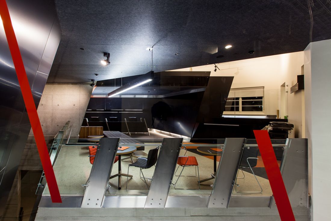 Công trình bao gồm các khối nhà làm từ chất liệu bê tông, tường kính, khung sườn thép, lưới áo thép xếp chồng lên nhau không theo một nguyên tắc nào cả.