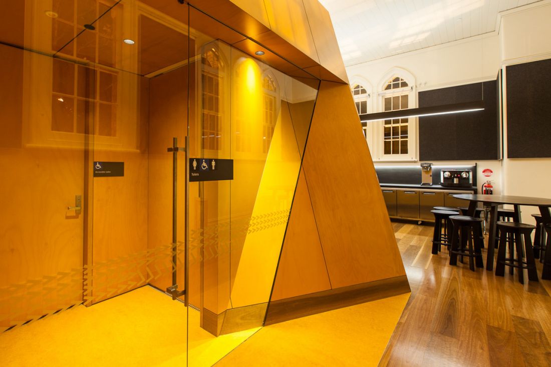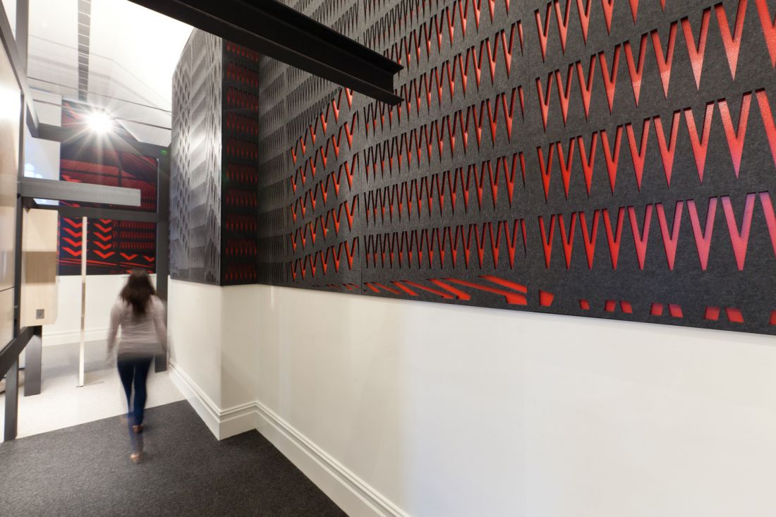 Tất cả các cửa sổ kính đôi mới chủ yếu được định hướng về phía đông và tiếp tục được che chắn bởi các tấm chắn nắng đục lỗ.