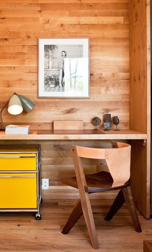 Góc làm việc hiện đại và ấm áp nhờ làm bằng gỗ sồi trắng địa phương, kết hợp các chi tiết trang trí tinh tế.