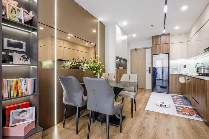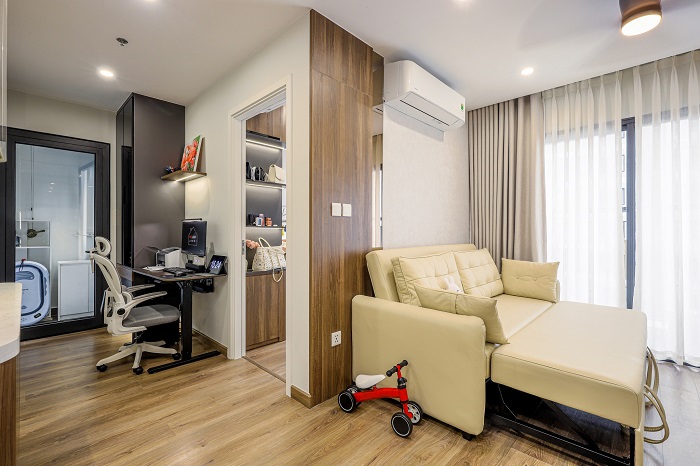 Căn hộ được thiết kế tinh giản, nhưng đầy đủ công năng.
