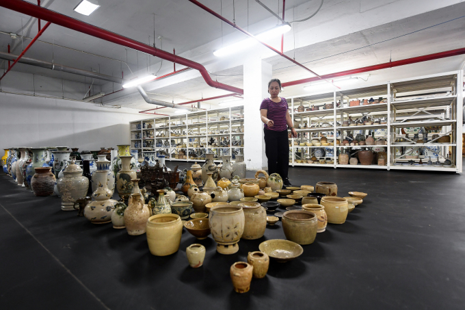 Hiện vật trưng bày trong bảo tàng đang được vận chuyển đến kho bảo quản, để phục vụ thi công. Ảnh: VnExpress