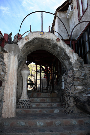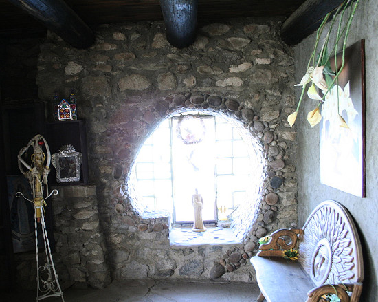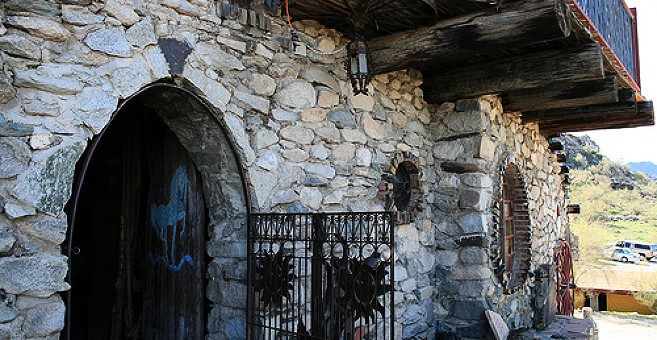 Người ta cho rằng, lâu đài Mystery được xây bởi một chất kết dính đặc biệt được làm từ một hỗn hợp của xi măng, vữa, bột đá vôi và sữa dê. Còn những vật liệu xây dựng chính là đá sẵn có ở địa phương, phụ tùng ô tô phế thải, sắt cũ được trục vớt từ một hầm mỏ, cột điện thoại…Lâu đài này có 18 phòng được trang trí rất đặc biệt với những sắc màu rực rỡ và đa dạng về chất liệu. Trong lâu đài này còn có cả một nhà nguyện và một ngục tối.