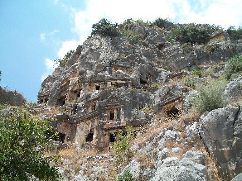 Những ngôi mộ ở phía đông rất gần nhà hát. Để viếng thăm những ngôi mộ ở đây phải đi qua một con đường đá không thoải mái lắm. Để tiếp cận ngôi mộ Painted Tomb, một trong những ngôi mộ nổi bật nhất trong Lycia với nhiều màu sắc xanh, đỏ và vàng. Những ngôi mộ của người Lycia tương tự như nhà ở, có mái và cửa ra vào dễ dàng nhận thấy.