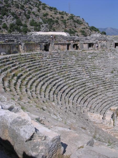 Ngoài những ngôi mộ cổ còn có nhà hát Amphi, một trong những điểm thu hút ở Myra, vẫn còn trong tình trạng tốt. Hành lang và mái vòm còn giữ nguyên vẹn, tổng cộng có 38 hàng ghế ngồi, mặt tiền của nhà hát được trang trí phong phú bằng những chiếc mặt nạ sâu khấu khắc trên đá và những cảnh tượng thần thoại huyền bí.