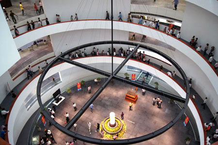 Hệ thống hiện vật phong phú, cấu trúc hành lang xoắn ốc cùng thiết kế chiếu sáng hiện đại của Bảo tàng Hà Nội đem lại cho khách tham quan những trải nghiệm mới mẻ.