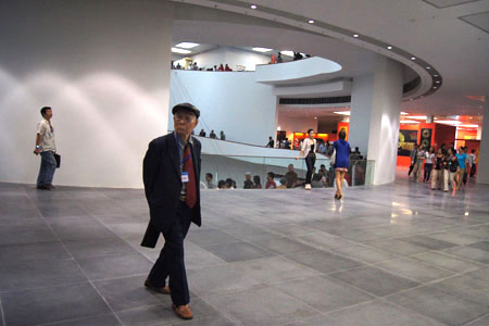 Ðại sảnh của Bảo tàng được thiết kế hình tròn và liên kết với các tầng trên bằng một không gian thông tầng. Thay vì dùng cầu thang, một đường dốc hình xoắn ốc sẽ nối liền cả bốn tầng.