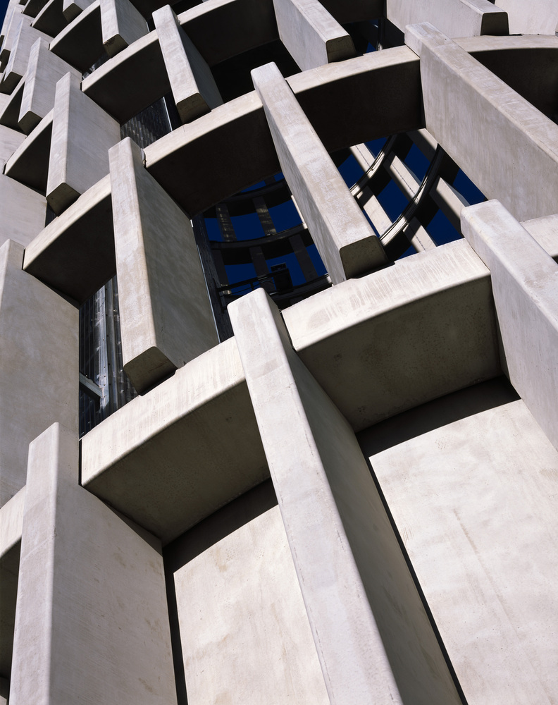 Dựa trên 4 trụ đỡ này, kiến trúc sư đã lắp ghép các trụ bê tông phụ khác cùng các thanh bê tông lại với nhau tạo thành một khối trụ tròn hoàn chỉnh, lắp đặt sole với nhau rất dễ thông thoáng ánh sáng, không khí xuyên qua tòa tháp.
