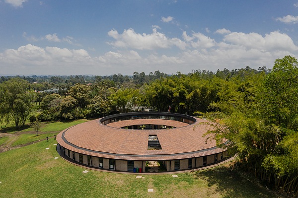 Dải tòa nhà hình tròn tạo thành một vòng khép kín, ở giữa là một khoảng sân vườn nhỏ cùng khu vui chơi dành cho trẻ em.