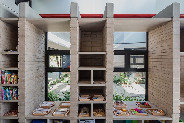 Ở bên trong, các phòng học cũng được tích đặt xây dựng các kệ sách, kệ đồ chơi làm từ gạch nung, cùng lối thiết kế khoa học, rộng rãi, thoáng đãng.