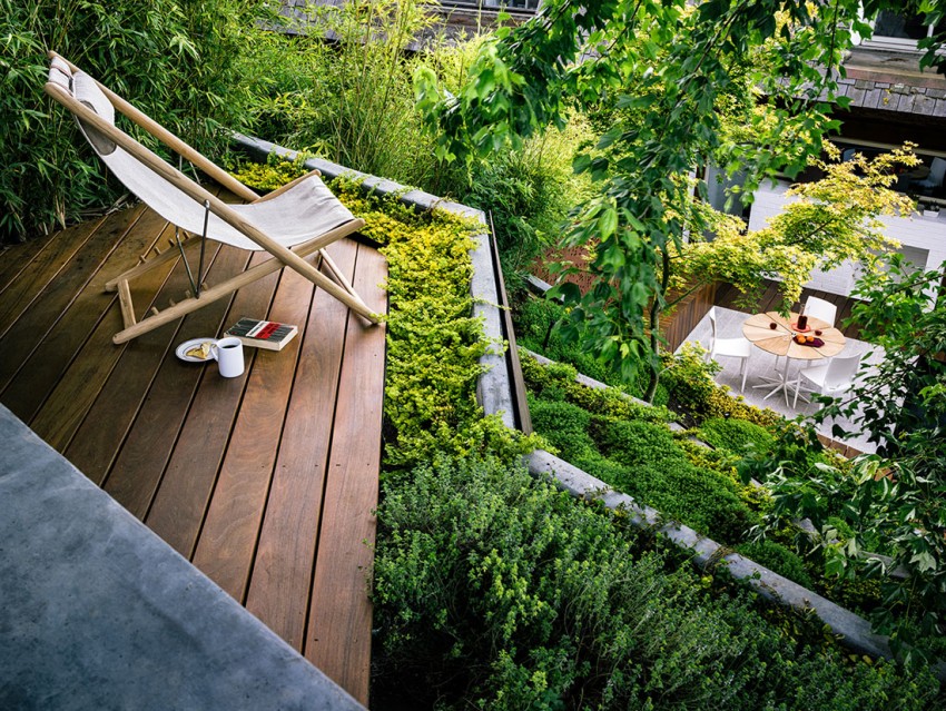 Khu vườn này nằm giữa hai căn nhà phố lân cận, nơi đây được xem là khu vực giải trí ngoài trời hoàn hảo. Dự án này được lấy cảm hứng từ một công viên ở Nhật Bản.