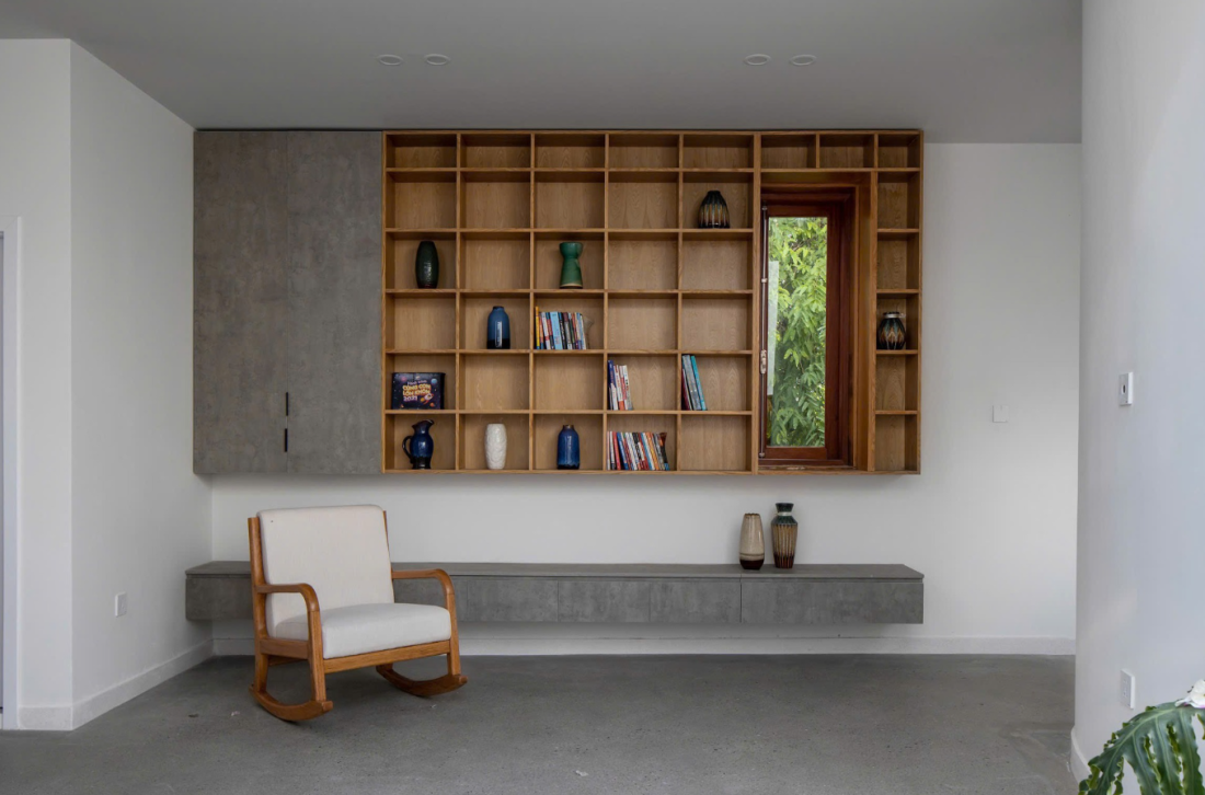 Ngôi nhà này không cố gắng phô trương bằng những chi tiết rườm rà; trái lại, nó hiện diện như một tuyên ngôn về sự tĩnh tại thông qua ngôn ngữ của những khối xếp tối giản.