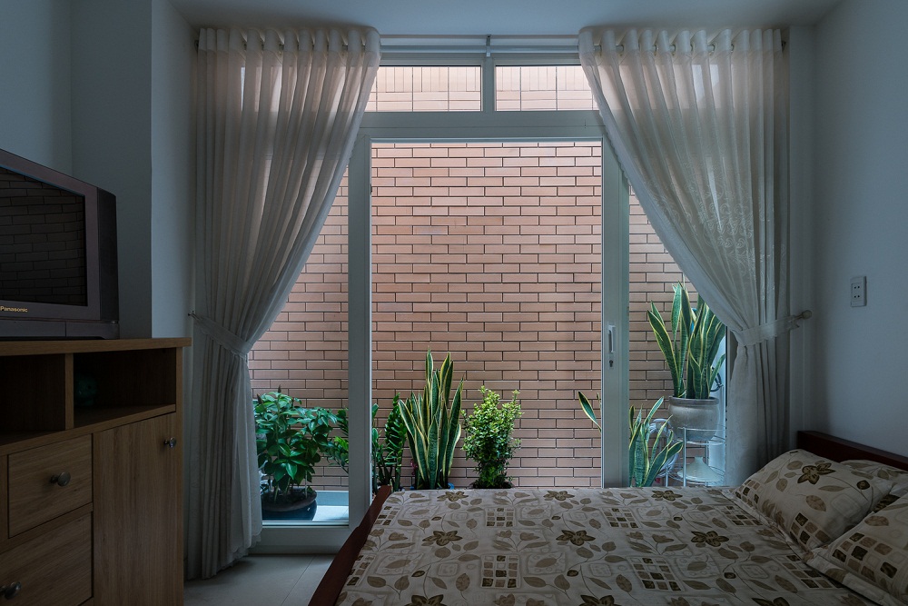 Ở tầng trệt, nhằm giảm thiểu sự đi lại của chủ nhà đã lớn tuổi, các kiến trúc sư đã thiết lế một phòng ngủ.