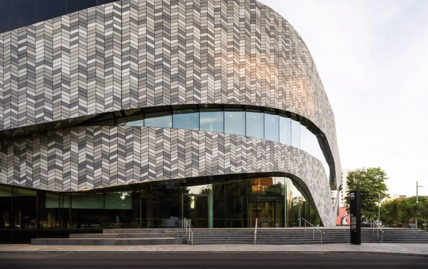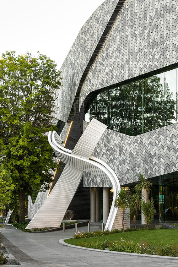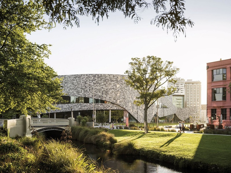 Gần 43.000 viên gạch sử dụng để ốp mặt tiền bên ngoài được đánh số và đặt riêng - gợi lên cảnh quan sông nước rộng lớn đã hình thành nên Đồng bằng Canterbury.