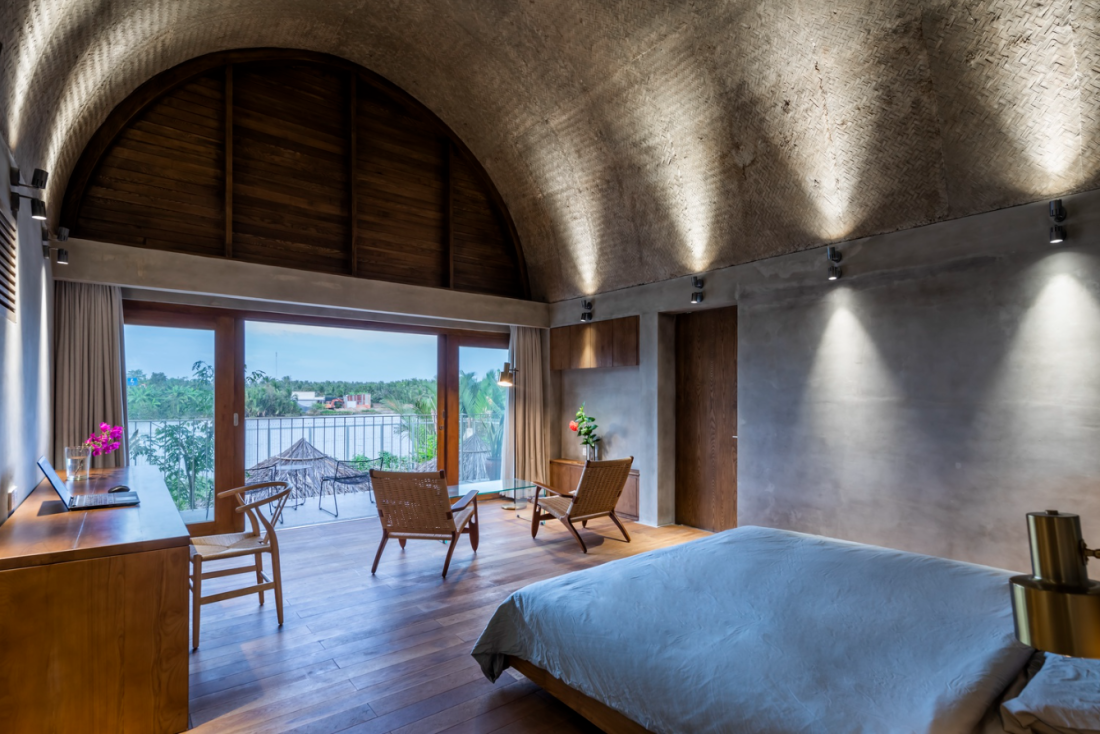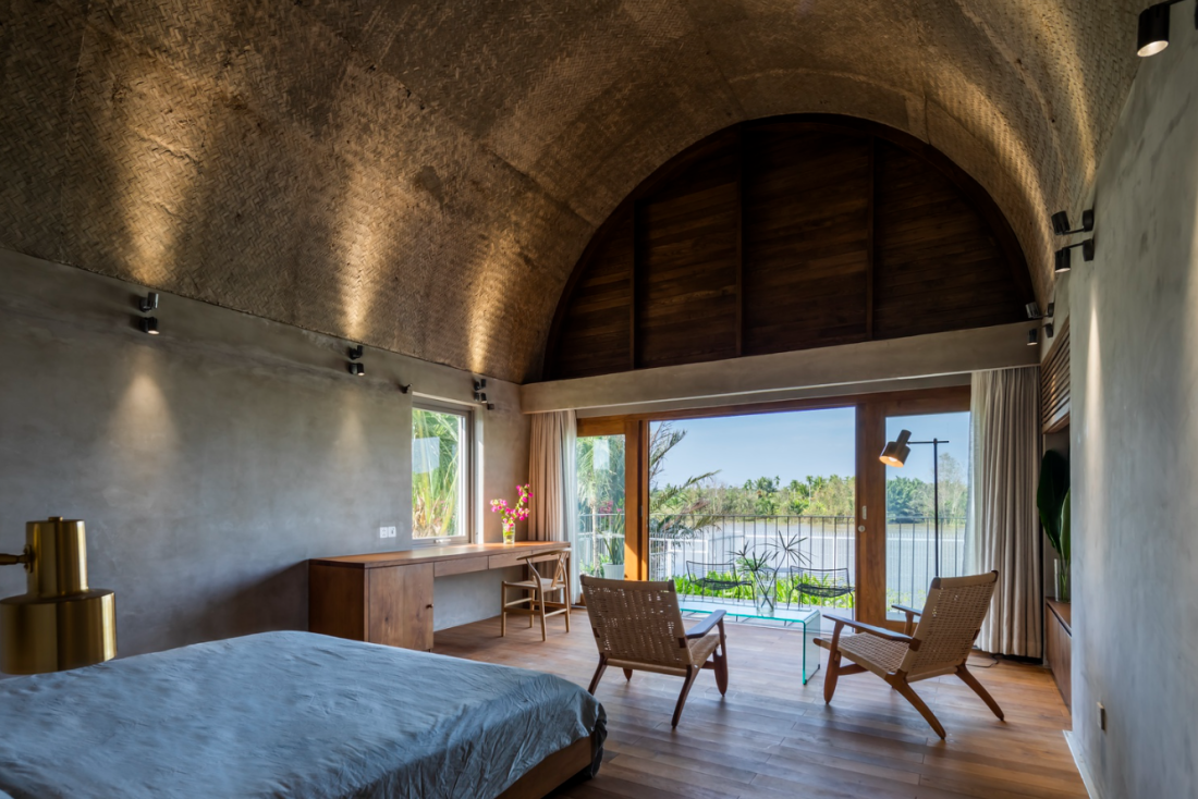 Mỗi buổi sáng, từ 3 căn phòng ngủ, thành viên có thể thu trọn vẻ đẹp của dòng sông vào tầm mắt – nơi ánh sáng phản chiếu trên mặt nước lấp lánh xuyên qua những khối vòm. Việc đặt không gian nghỉ ngơi ở cao độ này còn giúp đón nhận những luồng gió sông trong lành nhất, tạo ra một hệ thông gió tự nhiên hoàn hảo cho khu vực riêng tư.