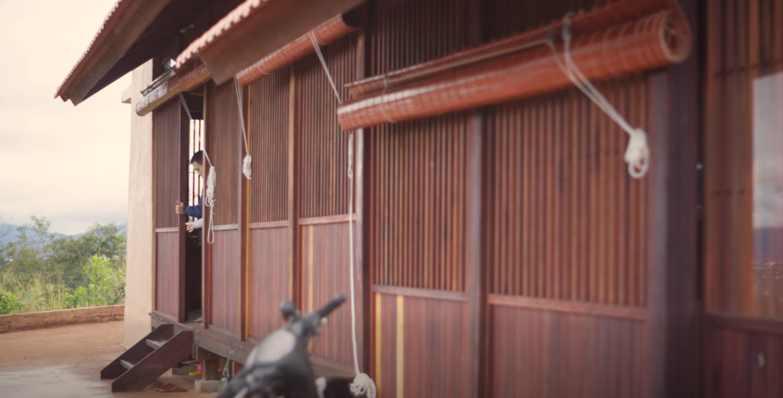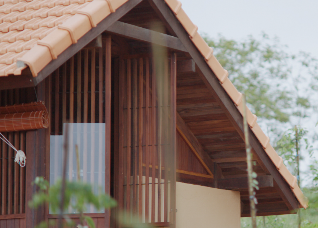 Kết hợp mái với thanh gỗ dài tạo nên một tổng thể quen thuộc nhưng vững chắc