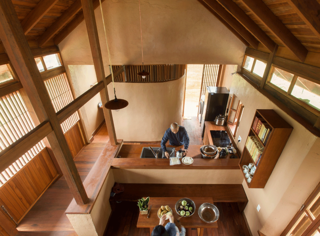 Lên đến gác lửng – nơi yên tĩnh nhất của ngôi nhà. Đây là không gian dành cho việc đọc sách và thiền định. Bước ra ban công nhỏ tại đây, bạn sẽ thấy mình như đang lơ lửng giữa đại ngàn để đón những tia nắng đầu ngày.